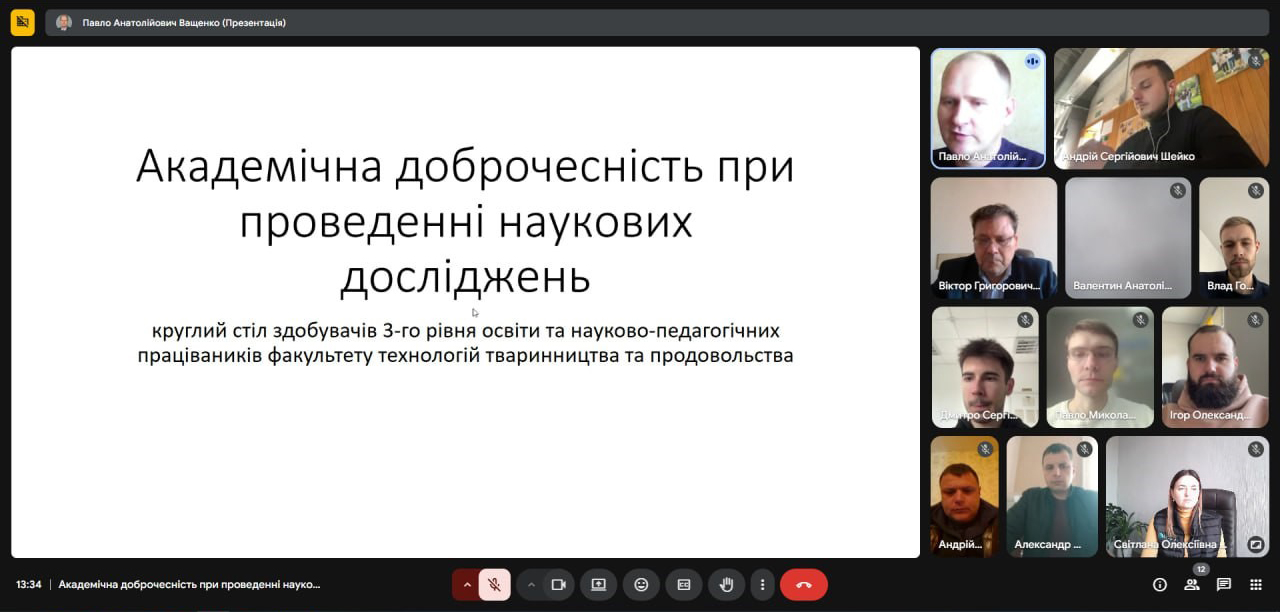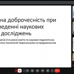 30 жовтня 2025 року на факультеті технологій тваринництва та продовольства відбувся круглий стіл на тему «Академічна доброчесність при проведенні наукових досліджень», в якому брали участь здобувачі третього (освітньо-наукового) рівня вищої освіти та науково-педагогічні працівники.