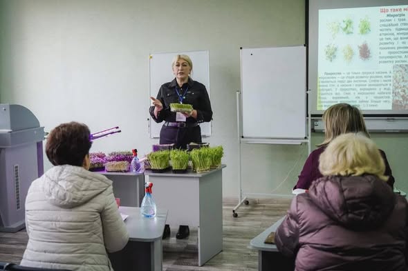 Учасники майстер-класу мали змогу отримати фахові знання від представниці ПДАУ щодо унікальних поживних властивостей мікрозелені як суперфуду та ознайомитися з практичними аспектами її вирощування.