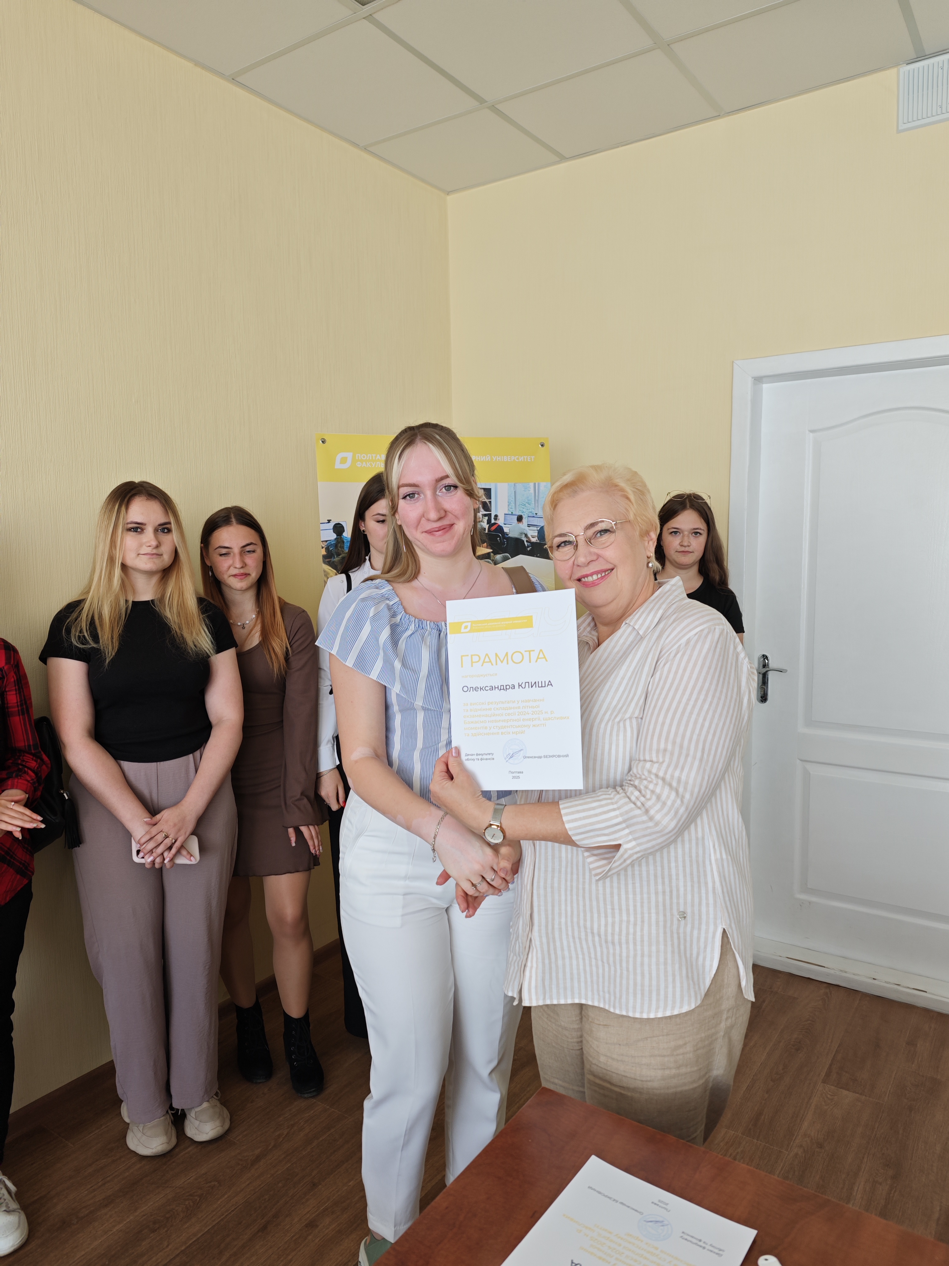 За сумлінне навчання, відповідальність та наполегливість почесними грамотами та відзнаками були відзначені кращі студенти спеціальностей "Облік і оподаткування", "Фінанси, банківська справа та страхування", "Філологія", "Політологія" та "Туризм":