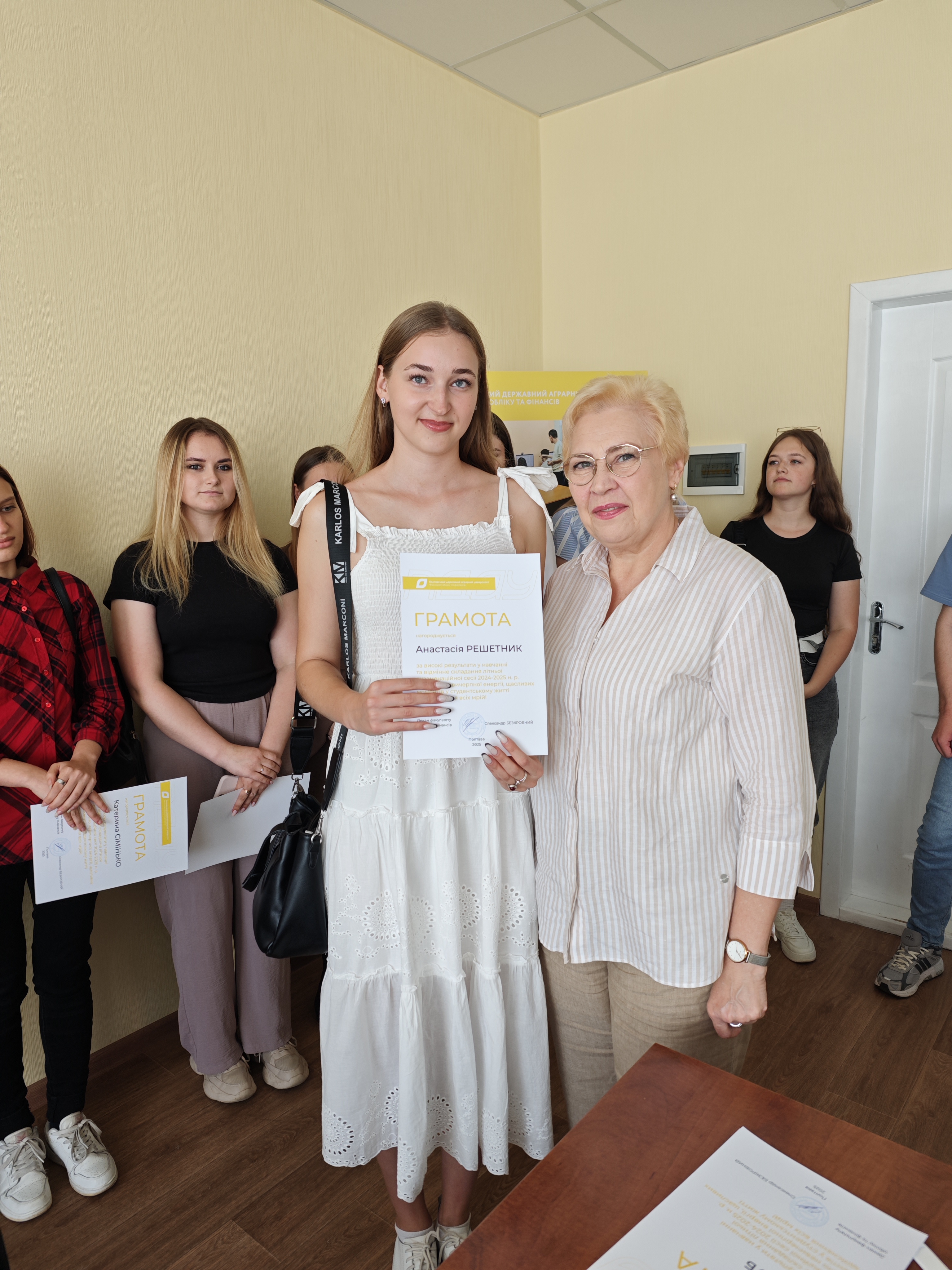 Нагородження студентів факультету обліку та фінансів, які продемонстрували високі результати під час складання літньої екзаменаційної сесії 2024–2025 навчального року.