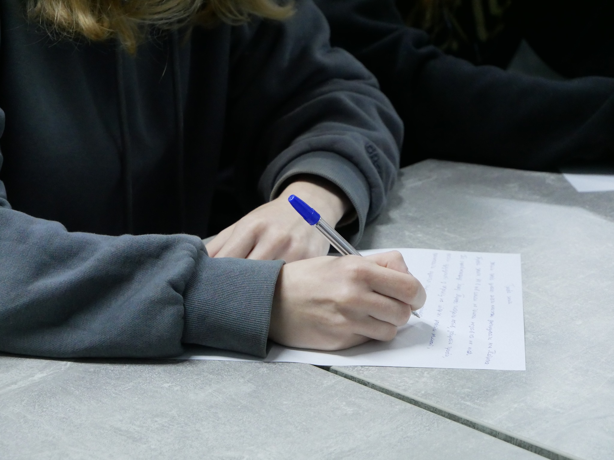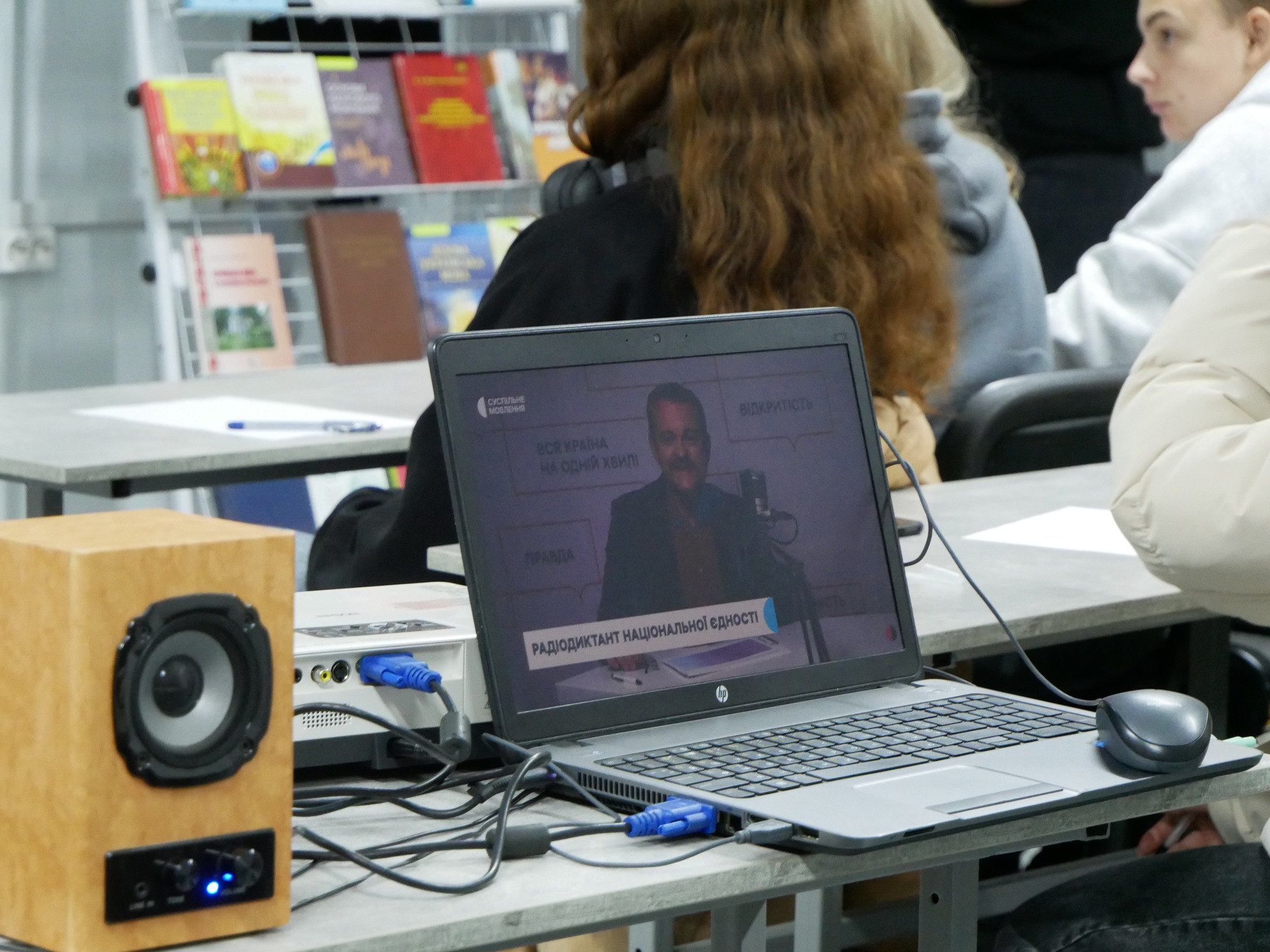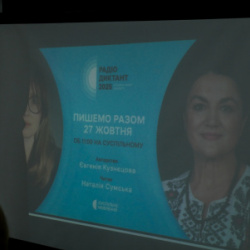 Розпочалося написання диктанту у ПДАУ з вітання доцентки кафедри германської і української філології Марини Антонюк. Вона ознайомила всіх присутніх з історією радіодиктанту національної єдності, розповіла про авторку цьогорічного тексту – відому сучасну письменницю Євгенію Кузнєцову, котра з м’якою іронією і незмінною любов’ю зображує українців. Усіх глибоко схвилював текст диктанту з натхненною назвою «Треба жити!», який душевно й одухотворено прочитала народна артистка України Наталія Сумська.