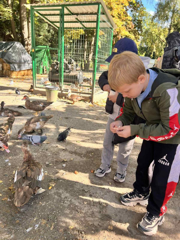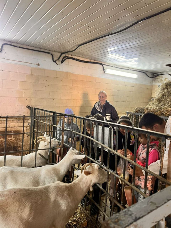 Але найцікавіше чекало далі — діти відвідали справжню ферму! Побачили безліч різноманітних тварин та птахів: качок, гусей та навіть прекрасного павича. Учні годували милих кроликів, а особливий захват викликала можливість погодувати привітних кіз.