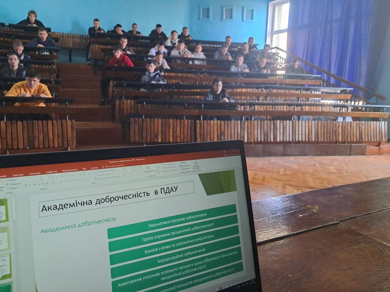 Наприкінці заходу кожен зі студентів підписав Декларацію про академічну доброчесність у новому диджиталізованому форматі – через особистий кабінет в АСУ ПДАУ. Такий підхід дає змогу не лише підтвердити готовність студентів дотримуватися принципів чесності та відповідальності в освітньому процесі, а й забезпечує зручність і прозорість цього процесу.