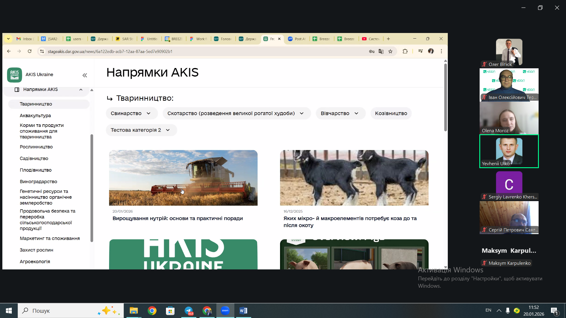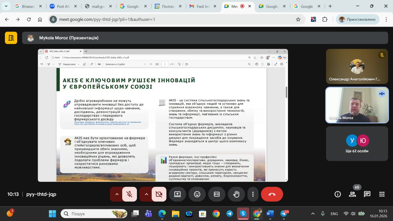 А вже 20 січня відбувся вебінар, присвячений саме функціонуванню Єдиної державної платформи сільськогосподарських знань та інновацій, а також практичним аспектам її наповнення. Участь у цьому заході взяв завідувач кафедри маркетингу ПДАУ Іван Терещенко. Під час вебінару було детально розглянуто роль платформи як центральної точки доступу до науково-технічної, аналітичної та консультаційної інформації для фермерів, дорадників, освітян, бізнесу й наукової спільноти, а також можливості використання цифрових сервісів для поширення інновацій в аграрному секторі.