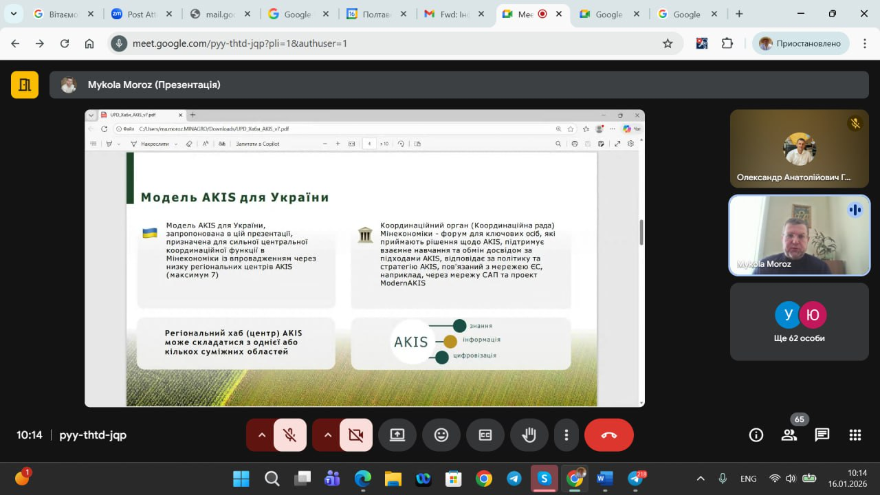 Полтавський державний аграрний університет долучається до формування національної системи AKIS (Agricultural Knowledge and Innovation System) та розбудови Єдиної державної платформи сільськогосподарських знань та інновацій. У січні 2026 року представники університету взяли участь у заходах, організованих Міністерством економіки, довкілля та сільського господарства України, присвячених стратегічним і практичним аспектам упровадження AKIS в Україні.