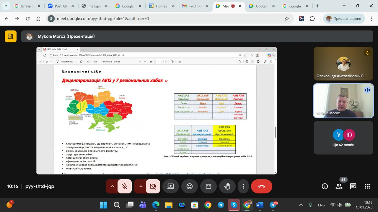 Відповідно до програми заходу зі вступним словом виступив Денис Башлик, заступник міністра економіки, довкілля та сільського господарства України, який окреслив стратегічні завдання держави щодо впровадження системи AKIS і значення науки й освіти у формуванні інноваційної аграрної політики. Концепцію AKIS та європейський контекст її реалізації представив Микола Мороз, заступник директора – начальник управління сільського розвитку Департаменту сільського розвитку Міністерства, зосередивши увагу на структурі AKIS, ролях ключових учасників і потребі інтеграції української моделі до підходів ЄС.