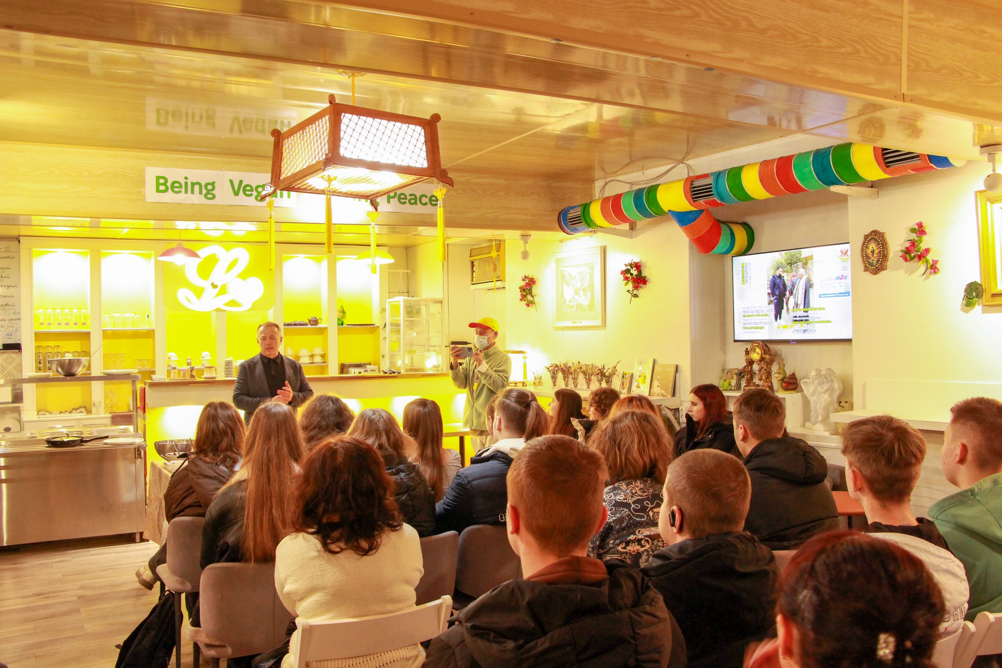 Родзинкою візиту був майстер-клас із приготування веганських страв, який для гостей провели представники кафе LOVING HUT, що працює на території ПДАУ. Учні мали змогу не лише спостерігати за процесом створення корисних та інноваційних страв, а й дізнатися більше про культуру здорового харчування.