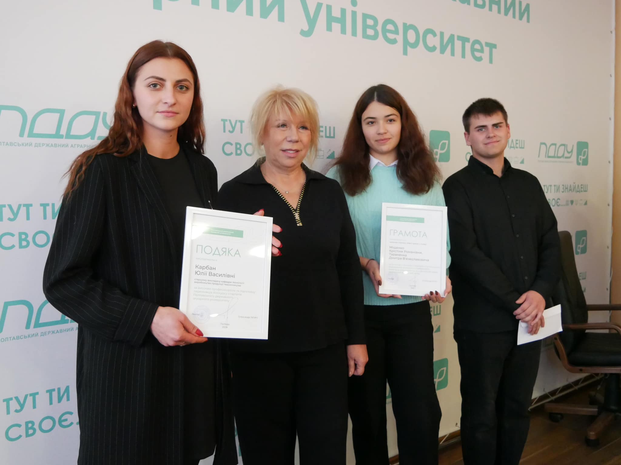 У межах заходу науковців, які брали активну участь у підготовці проєктів цього року, було відзначено подяками Полтавської обласної ради, а також грамотами Департаменту освіти і науки Полтавської обласної військової адміністрації та Полтавського державного аграрного університету.