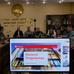 9 жовтня 2025 року у Полтавському державному аграрному університеті відбулася змістовна онлайн-зустріч проректора з науково-педагогічної, наукової роботи Анатолія Шості, проректора з науково-педагогічної роботи та міжнародних зв’язків Олега Горба, завідувачки аспірантури та докторантури Олени Сіренко, гарантів освітньо-наукових програм, наукових керівників та аспірантів із керівником докторського коледжу Університету Лестера (Велика Британія) Alex Goddard. Подія стала важливим етапом розвитку міжнародного партнерства та обміну досвідом у сфері підготовки докторів філософії.