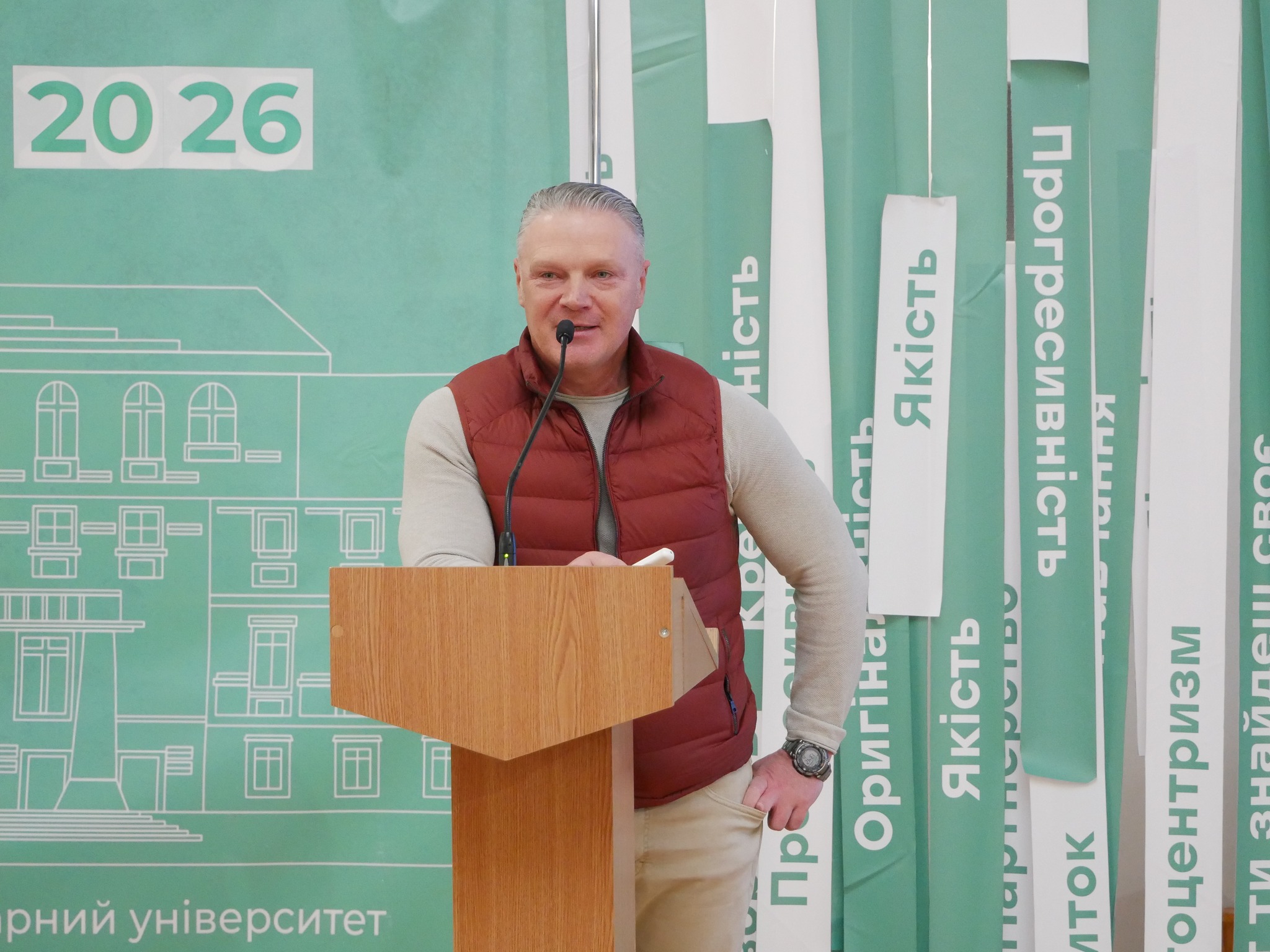 У своєму виступі Володимир Писаренко підкреслив, що сучасна модель підготовки фахівця повинна зміщувати акцент із винятково теоретичних знань на формування інструментальних і системних компетентностей — здатності працювати в умовах невизначеності, управляти проєктами, використовувати спеціалізоване програмне забезпечення та ухвалювати комплексні управлінські рішення.