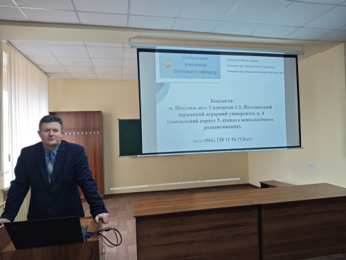 09 жовтня відбулась зустріч здобувачів вищої освіти 2025 року набору факультету обліку та фінансів всіх спеціальностей з омбудсменом учасників освітнього процесу Полтавського державного агарного університету Олександром Помазом.