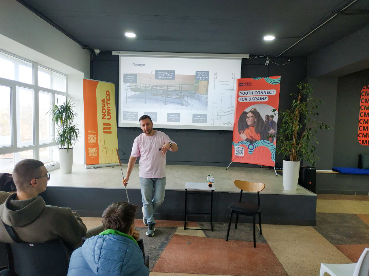 18 листопада 2025 року здобувачі вищої освіти ступеня бакалавра за освітніми програмами «Електроенергетика, електротехніка та електромеханіка», «Машини та обладнання сільськогосподарського виробництва», «Технології і засоби механізації сільськогосподарського виробництва», «Харчові технології» та «Сільськогосподарське будівництво» Полтавського державного аграрного університету та уповноважена особа університету з питань інклюзії та рівних можливостей взяли участь у заході Open Day, організованому громадською організацією «Нова Юнайтед» у межах проєкту Youth Connect for Ukraine, що реалізується за підтримки Британської Ради в Україні. Захід відбувся на базі Обласного молодіжного центру м. Полтави. Його метою було підвищення обізнаності молоді щодо принципів доступності, безбар’єрності та універсального дизайну в громадському просторі.