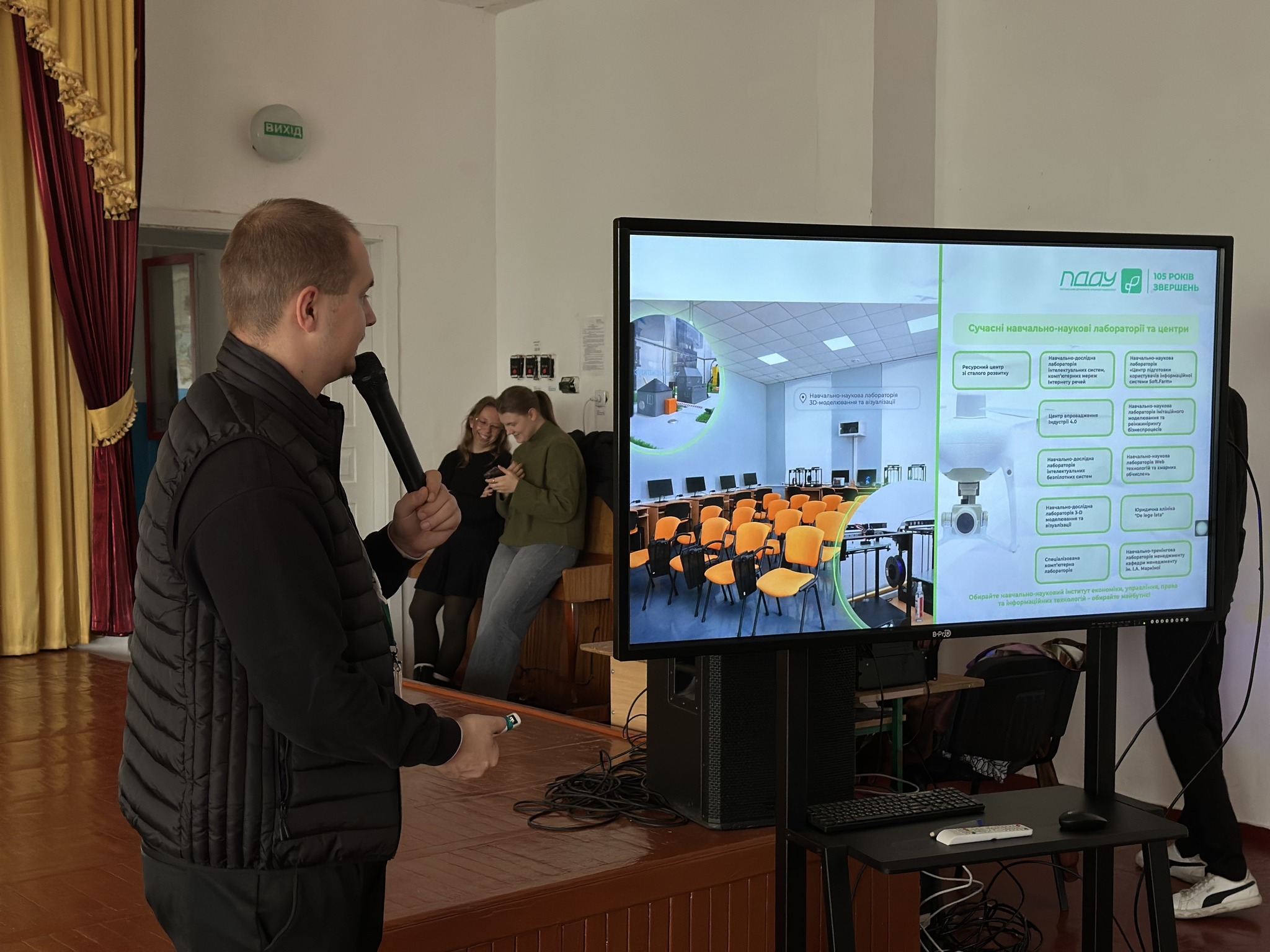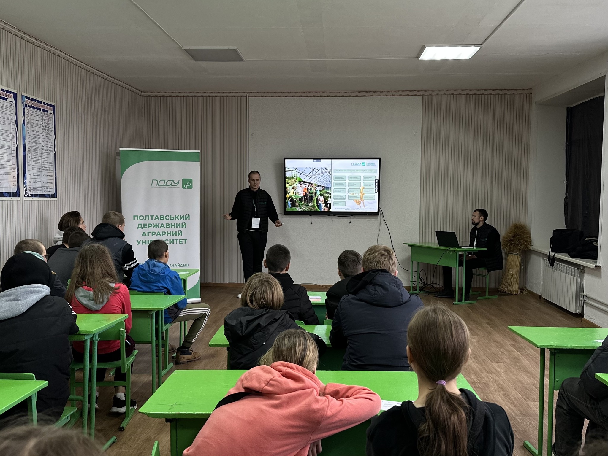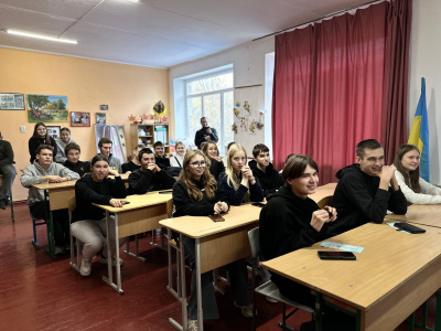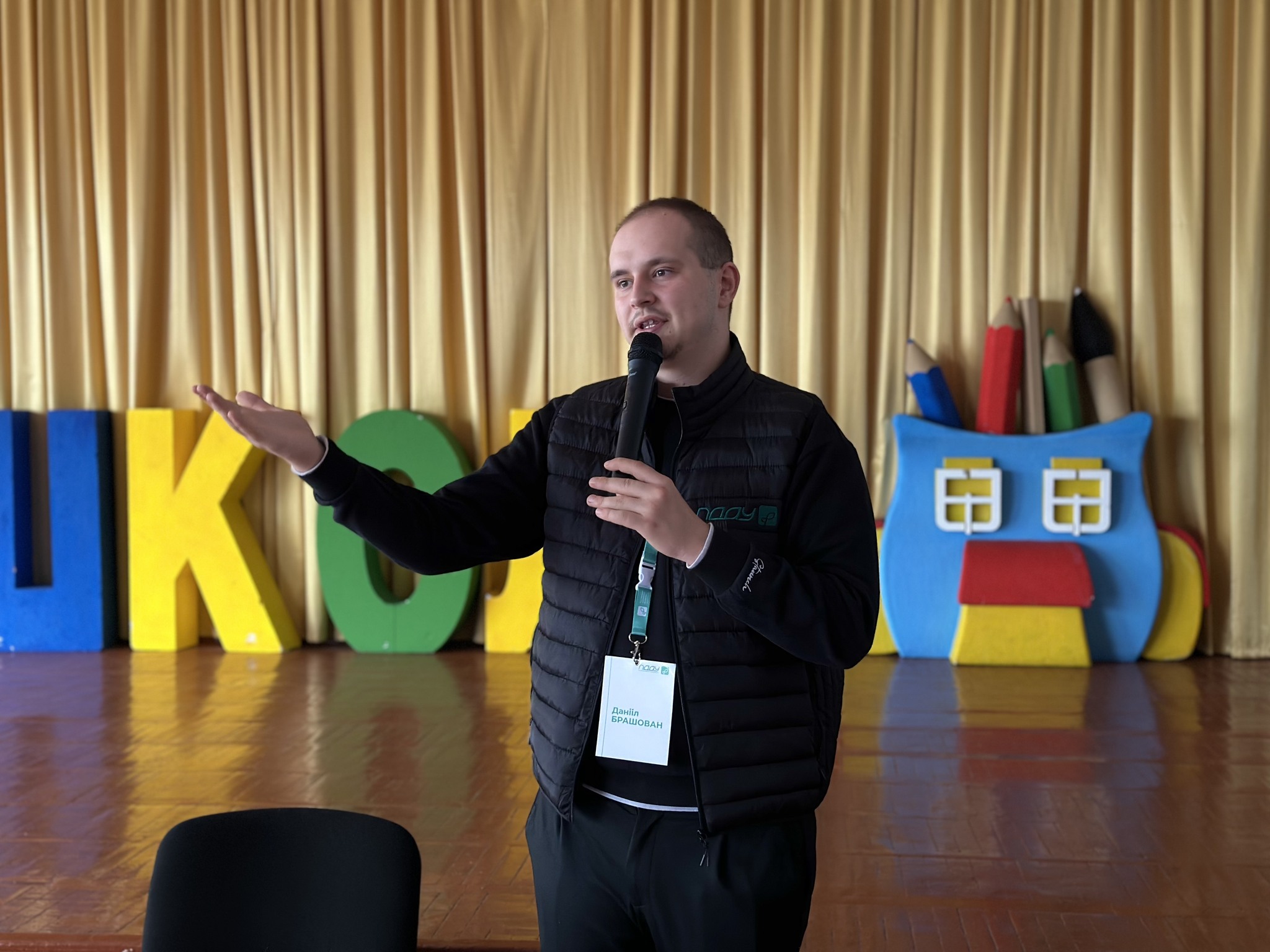Фахівець із профорієнтації Даніїл Брашован розповів старшокласникам про широкий вибір освітніх програм, дуальну освіту, міжнародні можливості, співпрацю з аграрним бізнесом і переваги навчання в одному з провідних університетів України.