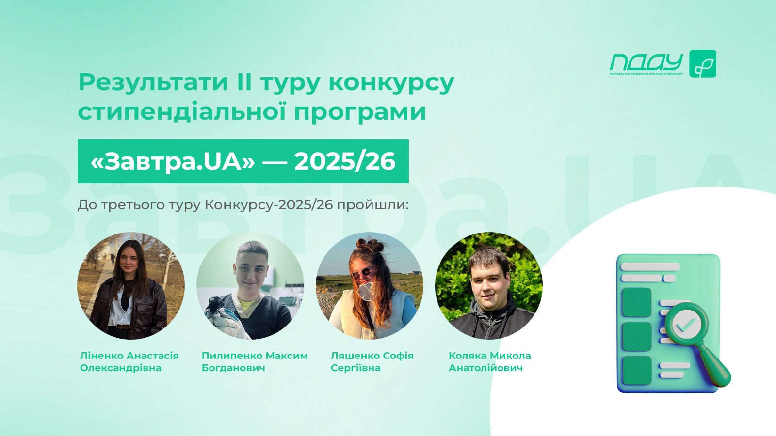 За підсумками перевірки 314 конкурсних робіт незалежними фаховими експертами до наступного етапу відбору допущено 295 учасників. Серед тих, хто успішно подолав другий етап і продовжить змагання за право отримання річної стипендії, — здобувачі вищої освіти Полтавського державного аграрного університету.