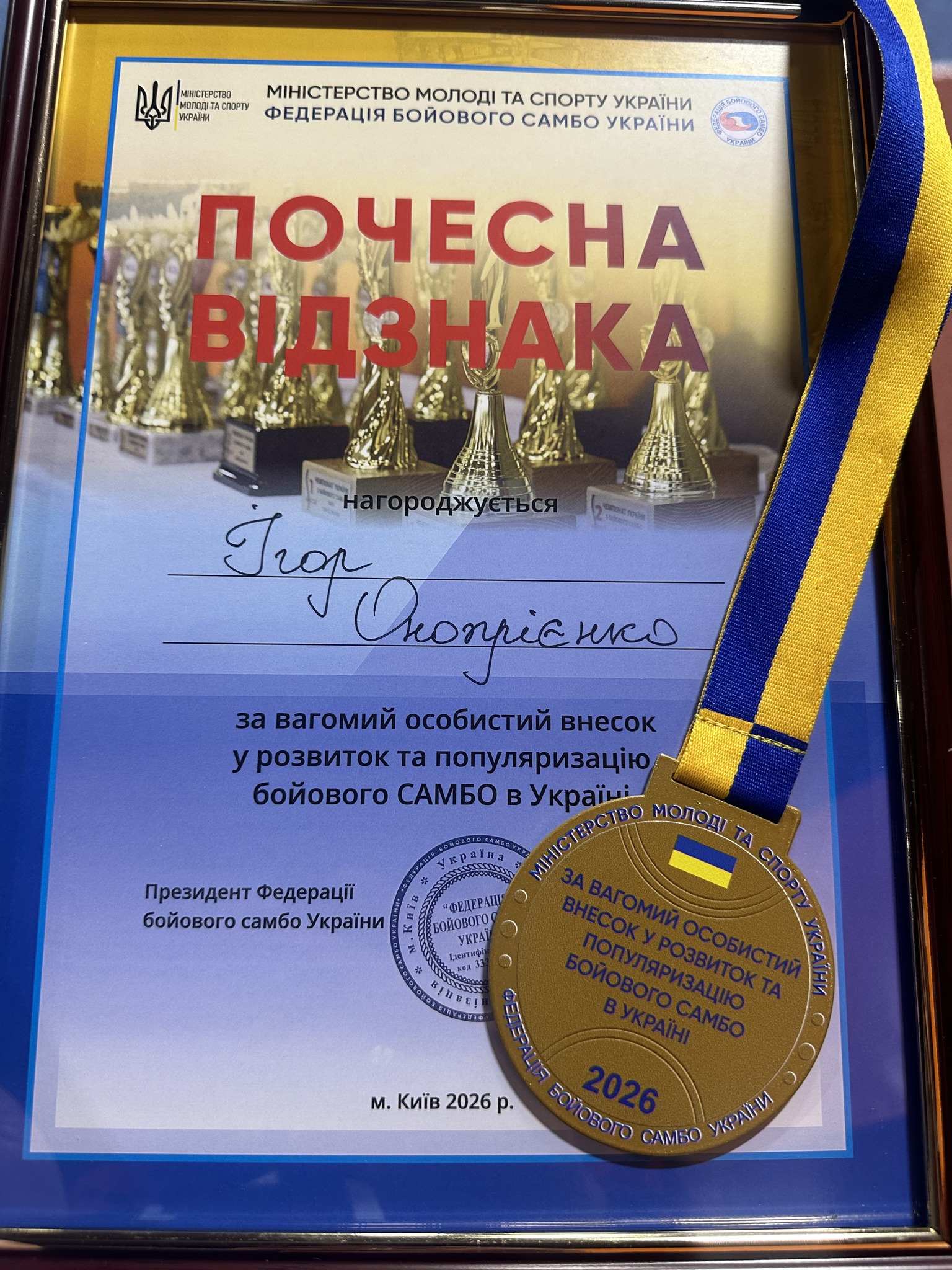 Важливою подією в межах чемпіонату стало відзначення головного тренера клубу ONETEAM, керівника Федерації бойового самбо Полтавської області Ігоря Онопрієнка, який отримав почесну відзнаку від Президента Федерації бойового самбо України Ельхана Назімовича Велієва за вагомий внесок у розвиток бойового самбо та підготовку спортсменів високого рівня.