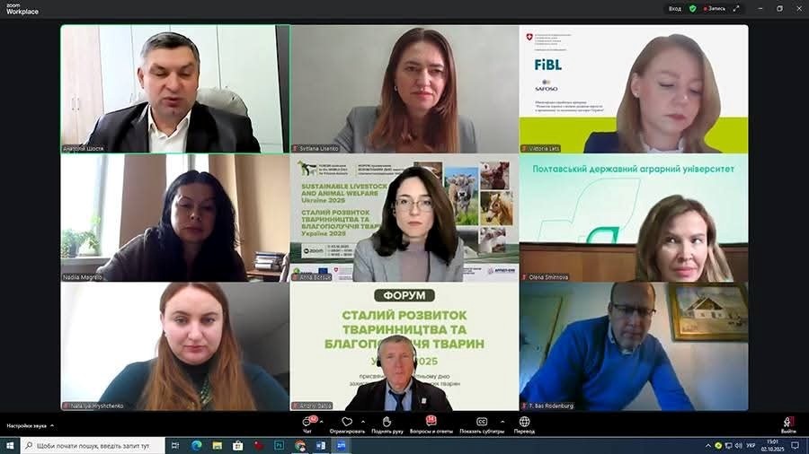 2 жовтня відбувся онлайн форум «Сталий розвиток тваринництва та благополуччя тварин – Україна 2025», організований проєктом SULAWE (EACEA), в якому взяло участь понад 560 учасників – представників уряду, бізнесу, науки та освіти, зокрема Міністерства економіки, довкілля та сільського господарства, Держпродспоживслужби, галузевих асоціацій, бізнес-об’єднань, тваринницьких господарств, Полтавського державного аграрного університету, наукових і освітніх установ, а також міжнародних проєктів технічної допомоги.