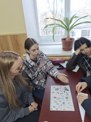 Здобувачі працювали у групах над завданням "Намалюй подарунок" і презентували їх один одному.