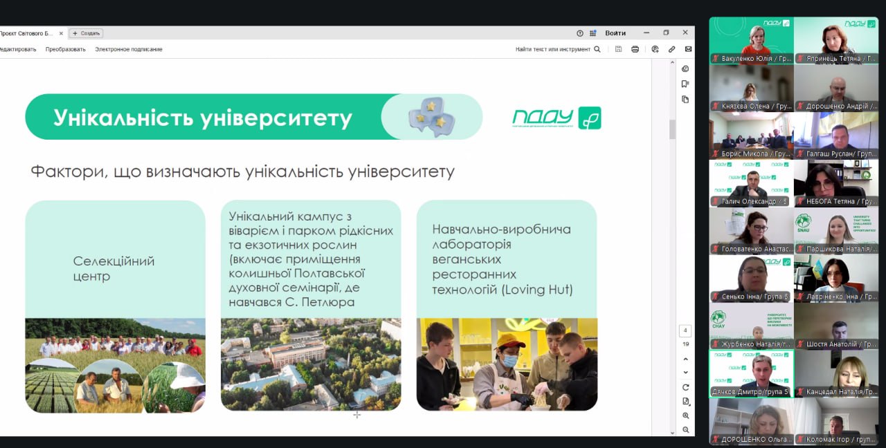 Інституційний проєкт ПДАУ розробили дві команди університету, до складу яких увійшли представники управлінської, наукової та освітньої спільноти на чолі з ректором університету Олександром Галичем. Учасники проходили навчання у Львові — на базі Українського католицького університету, та у Дніпрі — на базі Дніпровської політехніки. Це дало можливість комплексно поглянути на розвиток університету — від стратегічного бачення до операційних змін.