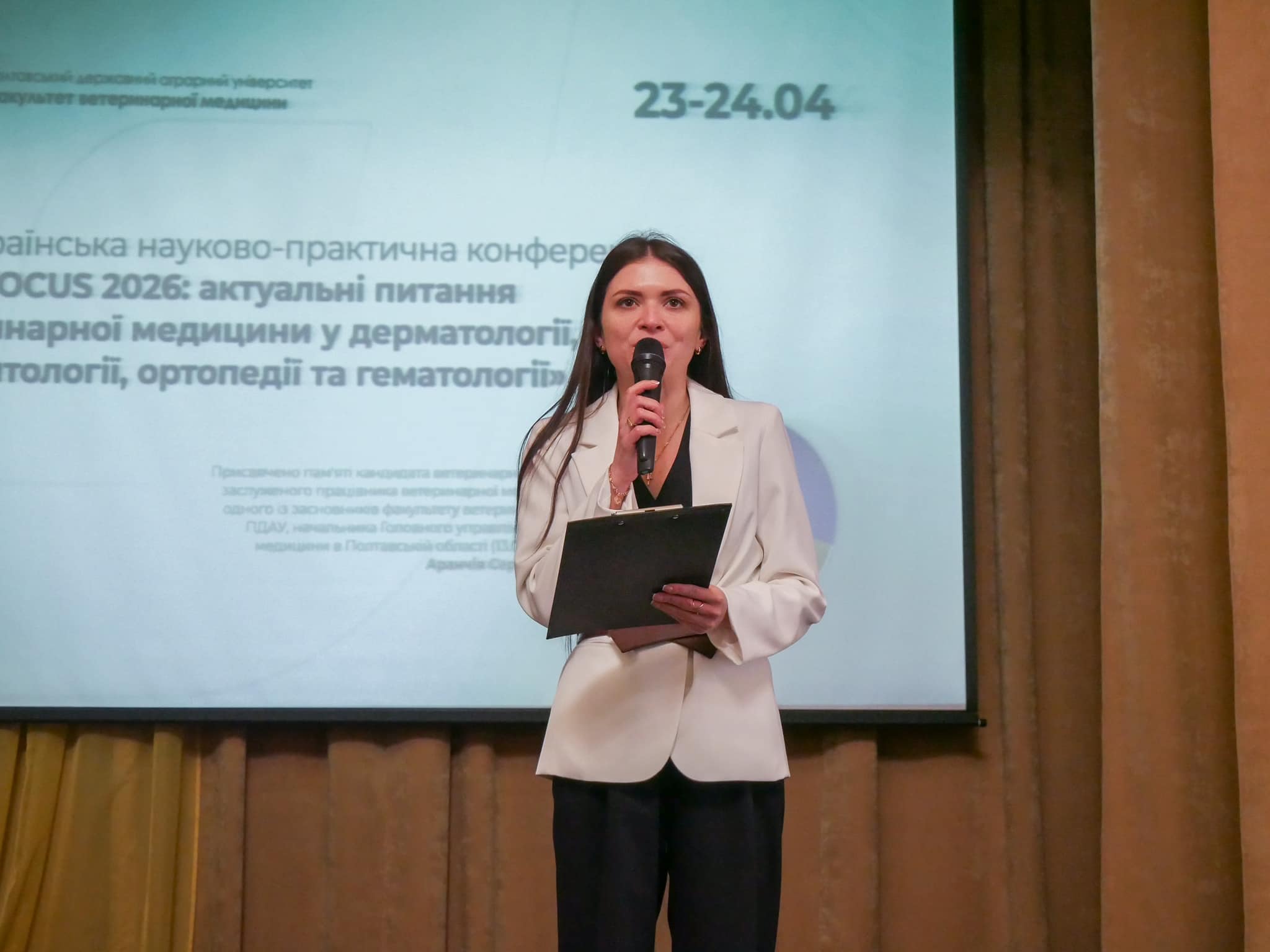 23 квітня у Полтавському державному аграрному університеті розпочалася дводенна Всеукраїнська науково-практична конференція «VET FOCUS 2026: актуальні питання ветеринарної медицини у дерматології, паразитології, ортопедії та гематології». Цьогоріч захід має особливе значення, адже присвячений 10-й річниці пам’яті видатного науковця, колишнього начальника Головного управління ветеринарної медицини в Полтавській області та одного із засновників факультету ветеринарної медицини ПДАУ Сергія Васильовича Аранчія.