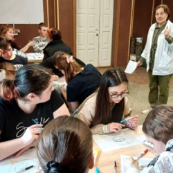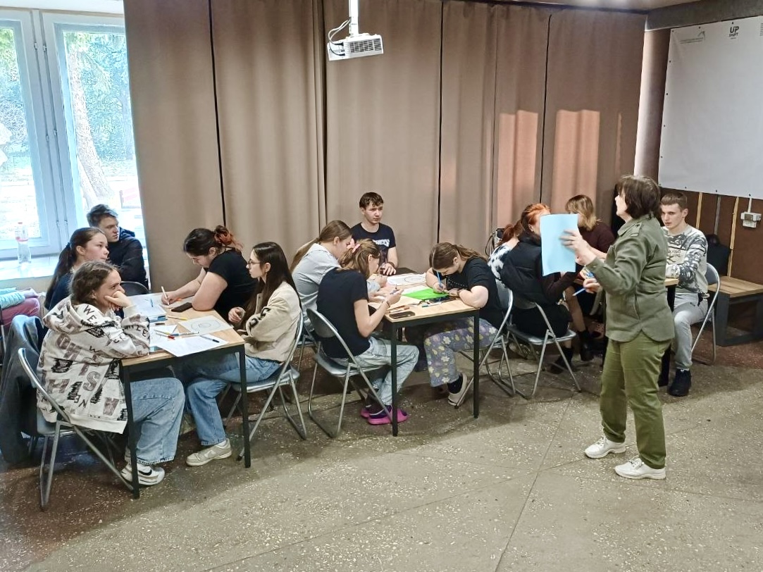 Перше заняття провела керівниця психологічної служби Ірина Плаксієнко. Почали із самодіагностики: за допомогою тесту професора Щербатих студенти оцінили свій рівень стресу. Це допомогло кожному з'ясувати дійсний психоемоційний стан - чи це просто втома, чи вже ознаки емоційного виснаження. Після тестування учасники в неформальній затишній атмосфері обговорили результати тестування та поділилися власними спостереженнями.