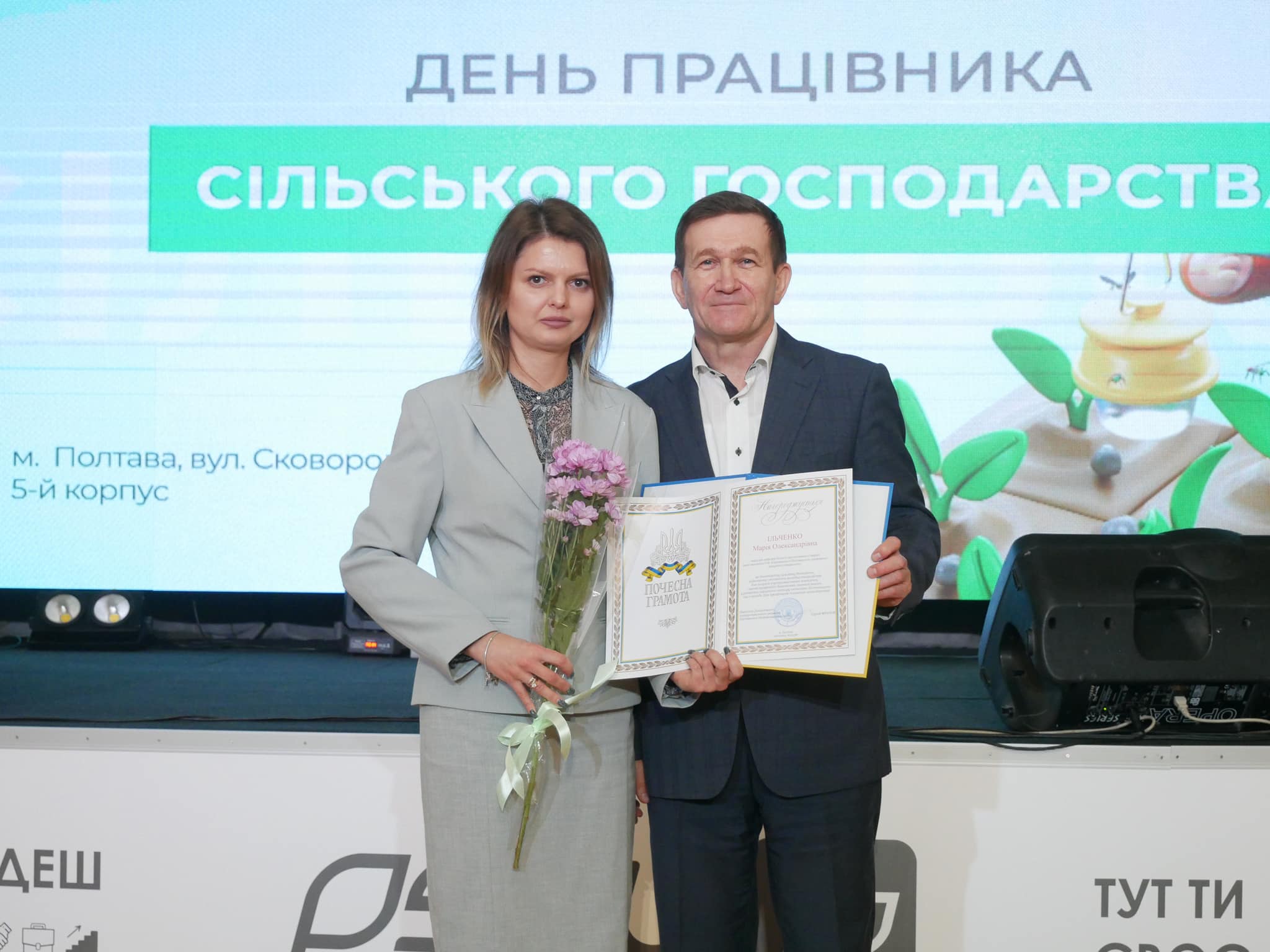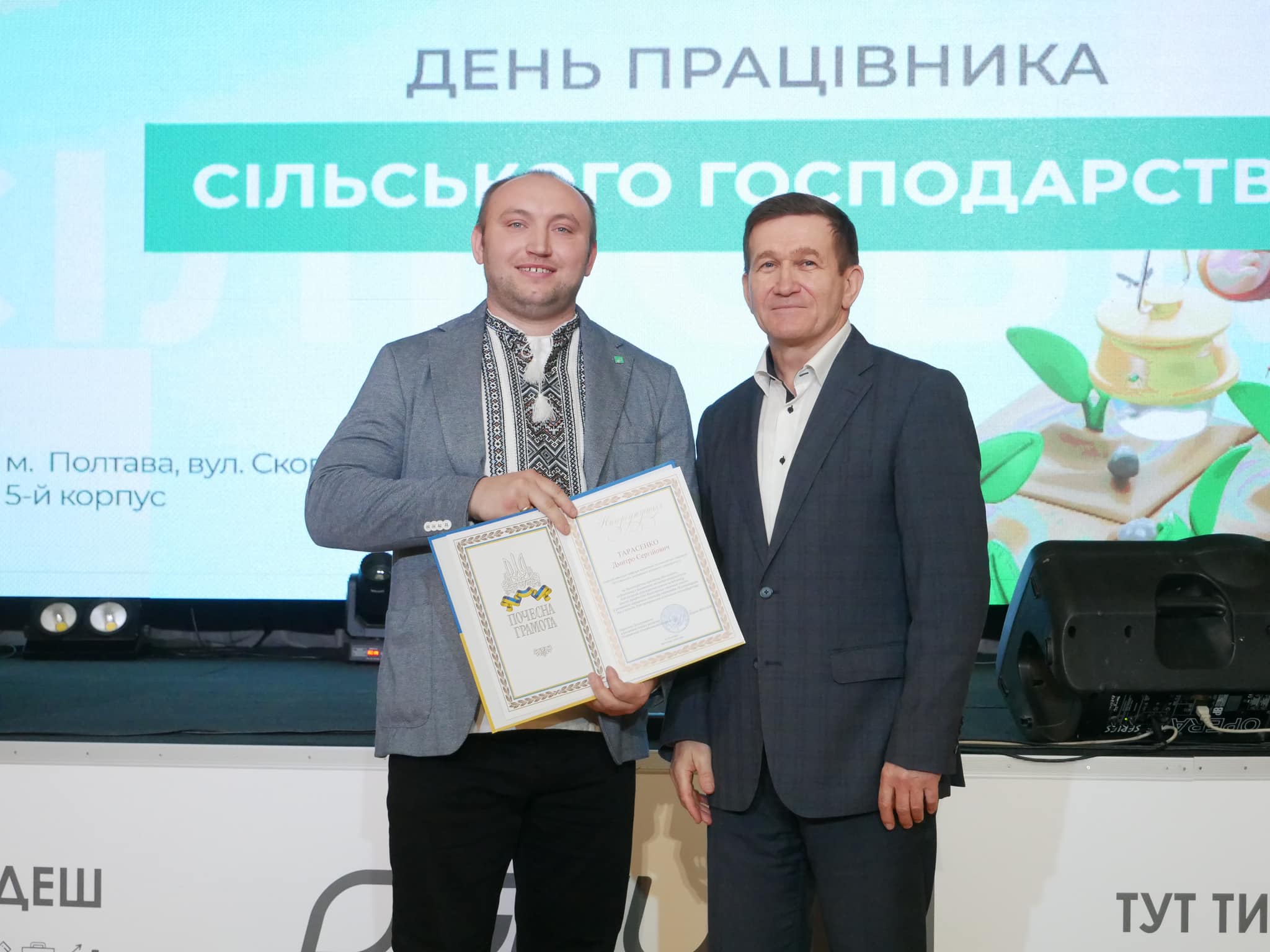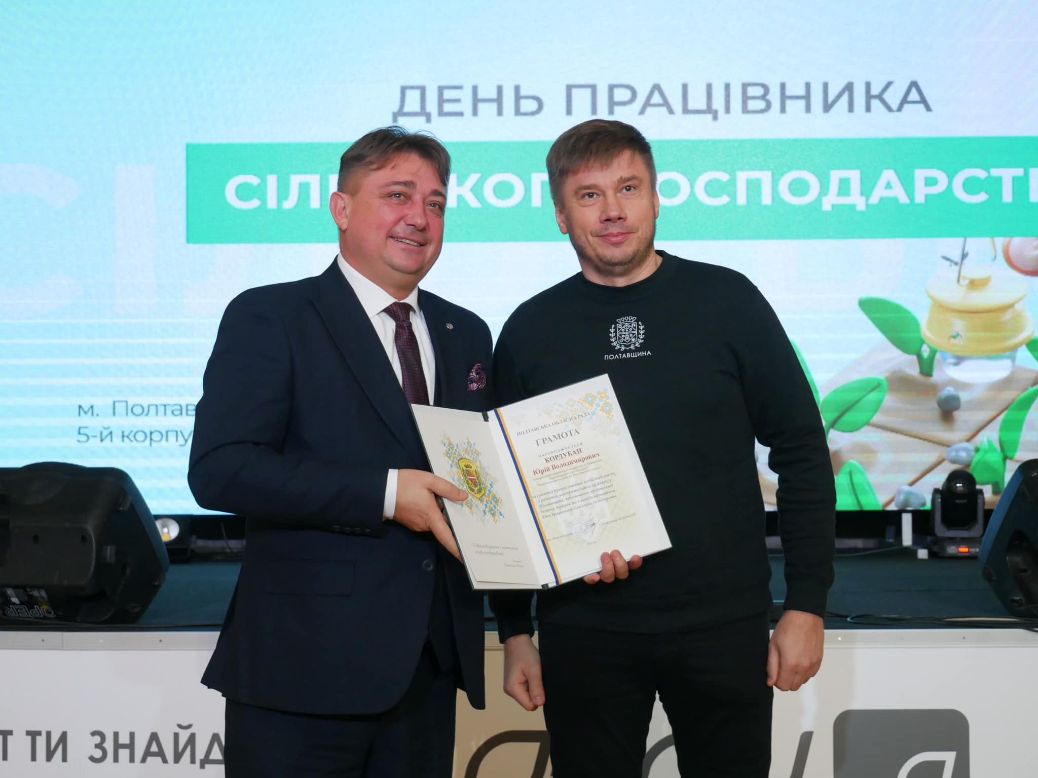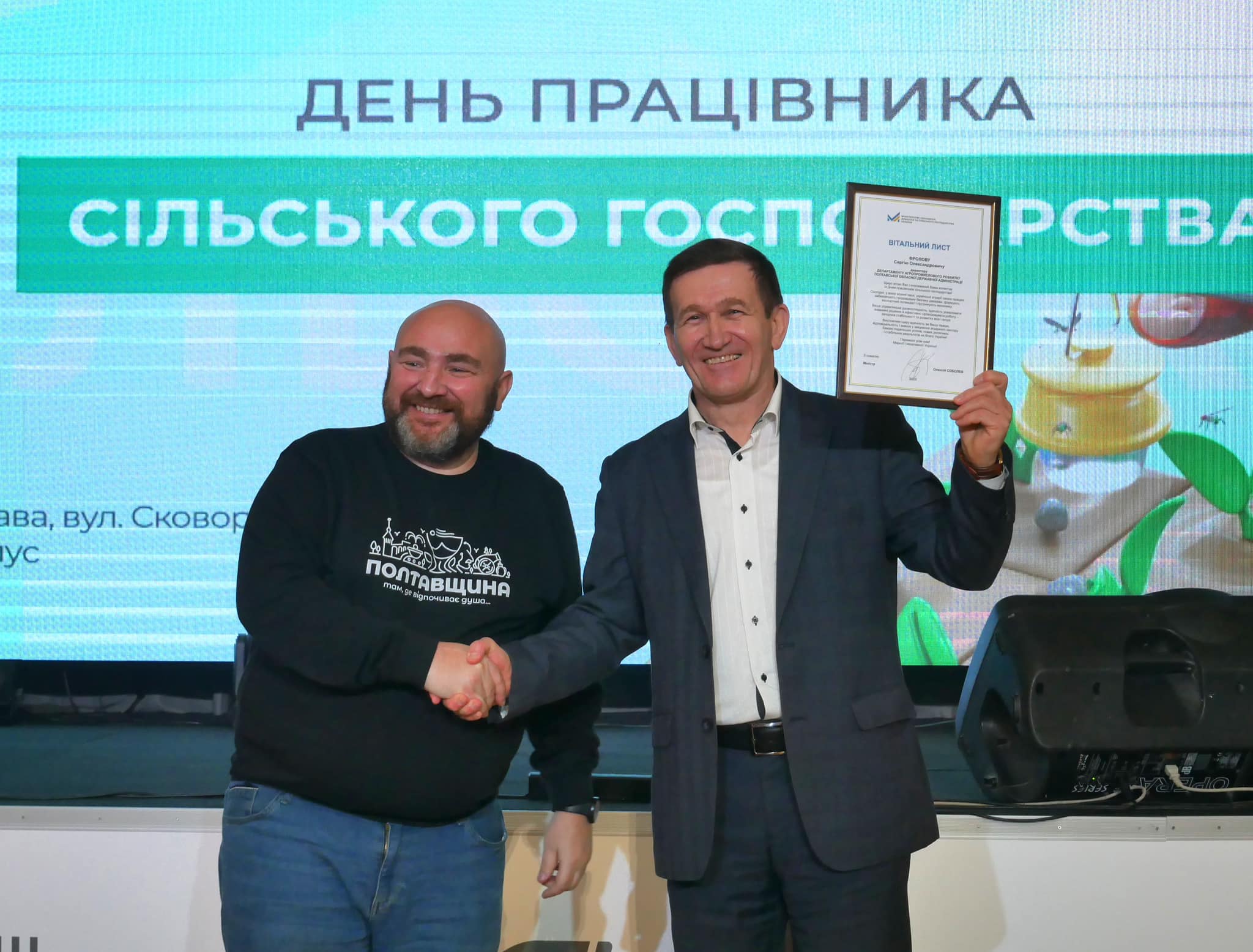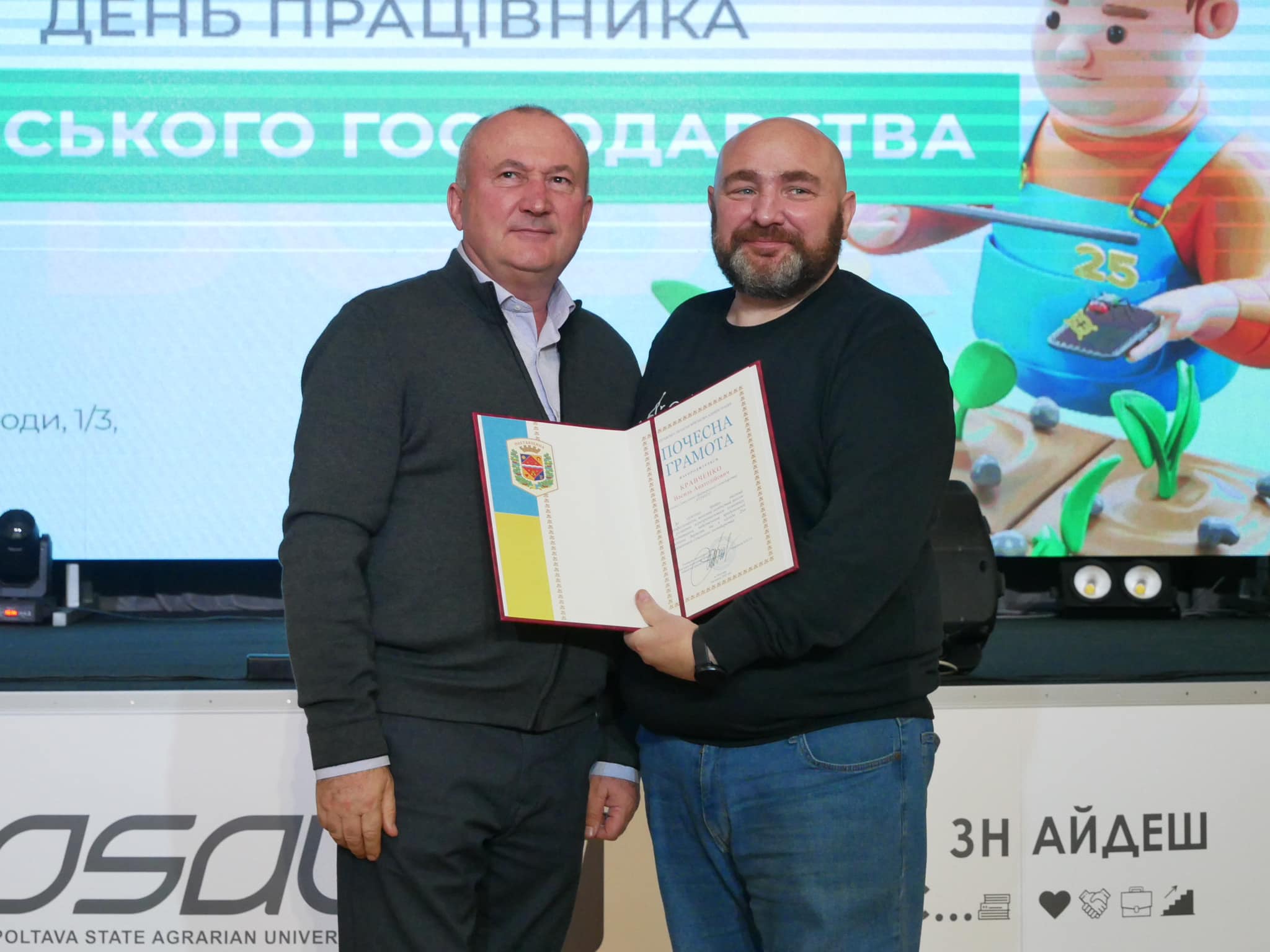 Зі словами вітання до присутніх звернулися заступник начальника Полтавської обласної військової адміністрації Антон Чубенко, який підкреслив стратегічну важливість аграрного сектора в умовах воєнного часу та подякував працівникам за стійкість і внесок у підтримку економічного фронту країни; голова Полтавської обласної ради Олександр Біленький, який наголосив на унікальній ролі українського хлібороба та запевнив у підтримці аграрних ініціатив на регіональному рівні; директор Департаменту агропромислового розвитку Полтавської ОВА Сергій Фролов, який відзначив високий професіоналізм працівників і роль інновацій; голова обласної профспілкової організації працівників АПК Галина Харченко, яка привітала колег, наголосивши на важливості соціального захисту та підтримки аграрної спільноти.