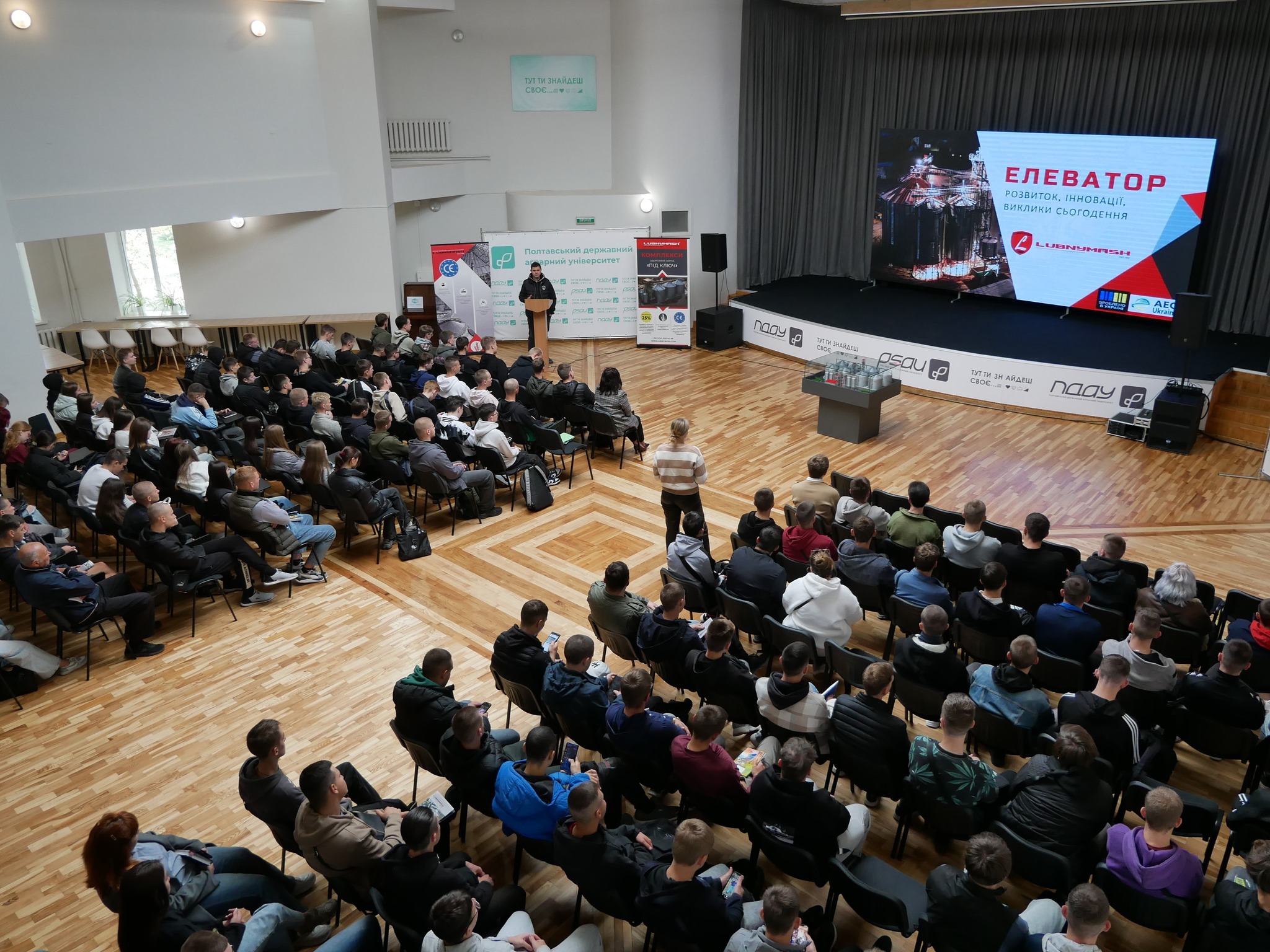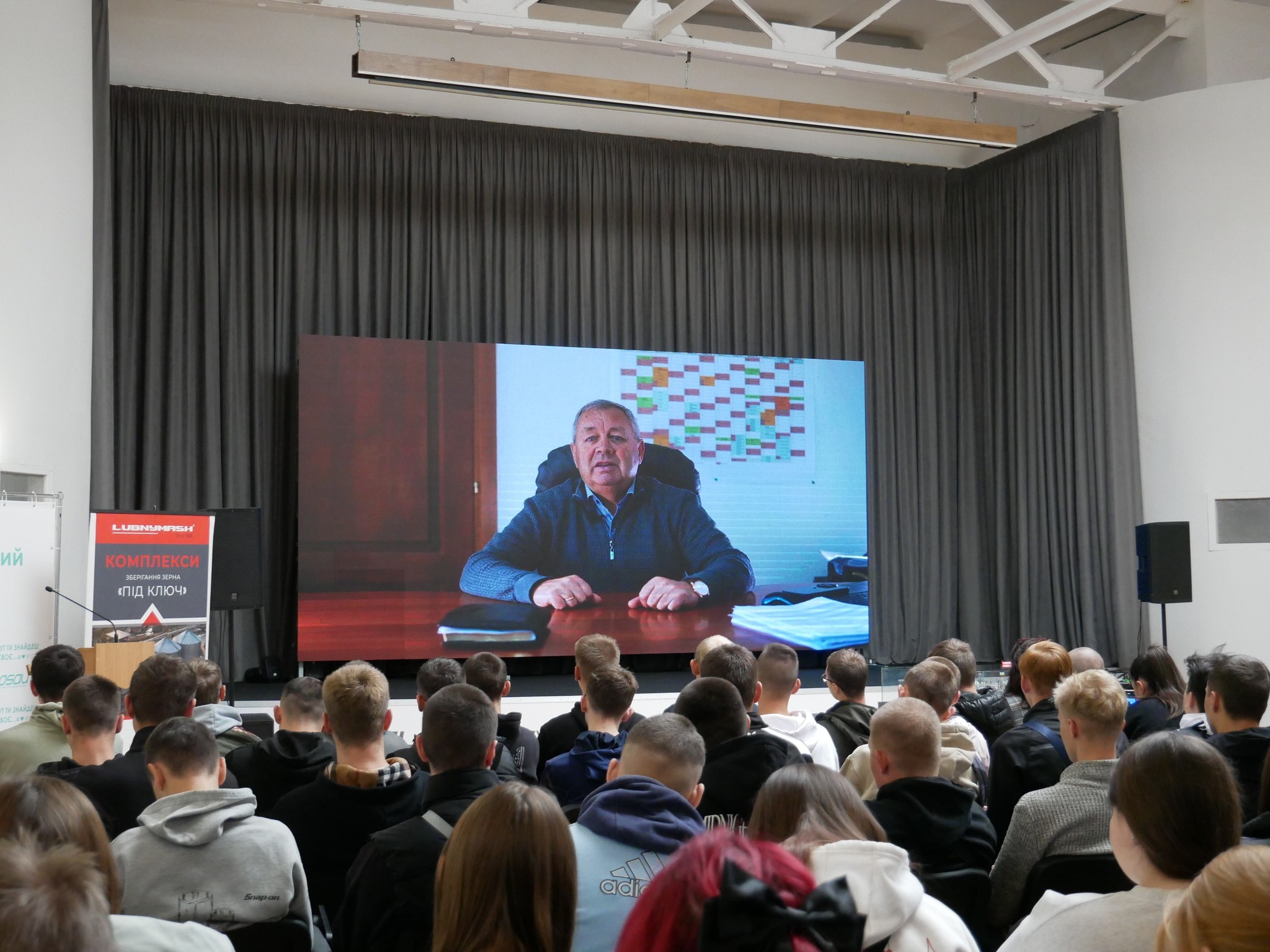 Завершився офіційний блок зверненням до студентів від директора заводу Юрія Плескача та лекція-доповідь «Елеватор: розвиток, інновації, виклики сьогодення» від Андрія Білика, в якій він окреслив сучасні тенденції та виклики галузі.