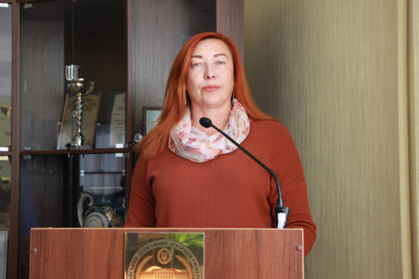Доцентка кафедри політології, історії та філософії Тамара Лахач презентувала присутнім уривки документальних стрічок про долю урочища Бабин Яр в радянську добу і сьогодні.