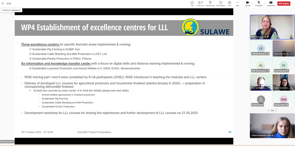 Виконавці міжнародного проєкту SuLaWe від Полтавського державного аграрного університету 30 жовтня 2025 року взяли участь у 6-му засіданні керівного комітету цього проєкту.