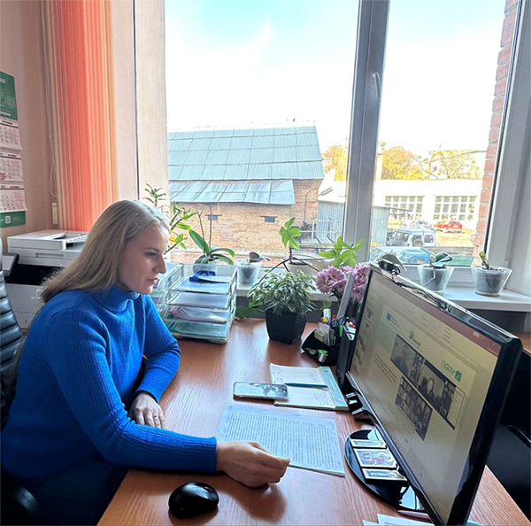 Фахівчиня відділу міжнародних зв’язків Олена Смірнова представила результати роботи відповідальних виконавців проєкту по робочому пакету 4 «Створення центрів передового досвіду для навчання протягом усього життя» щодо перспектив з використання створених LLL-центрів і реалізації розроблених у них курсів.