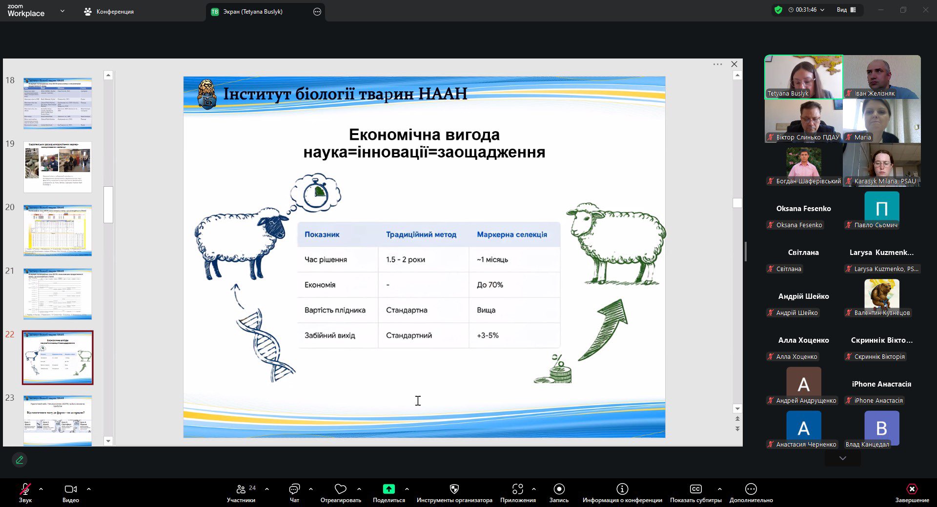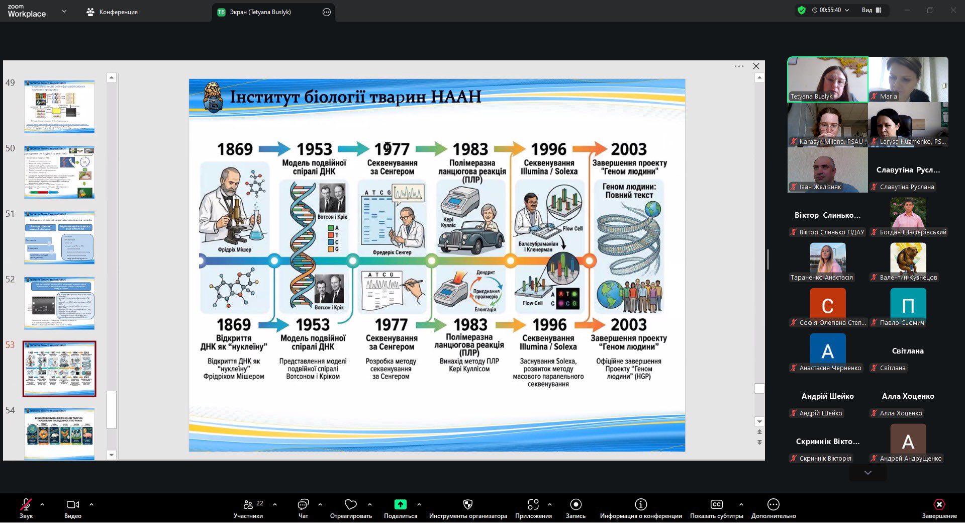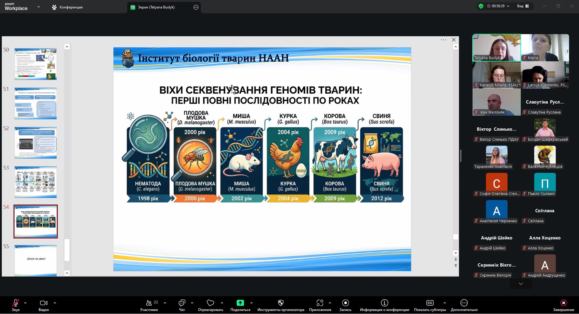 Щиро дякуємо Тетяні Володимирівні за пізнавальну лекцію присвячену генетичним дослідженням у галузі тваринництва. Представлений матеріал був надзвичайно актуальним і корисним для розширення наукового світогляду здобувачів.