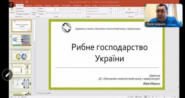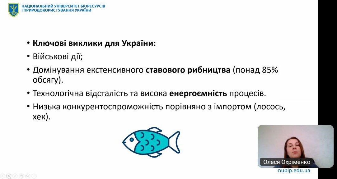 Заслухали цікаву доповідь Олесі ОХРІМЕНКО на тему «Сучасні тренди світової аквакультури та їхній вплив на трансформацію рибного господарства України».