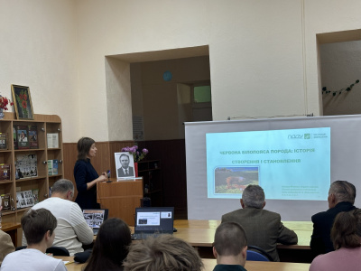 Доповідь на тему «Червона білопояса порода свиней: історія створення і становлення» представила Оксана Фесенко, доцентка кафедри біології продуктивності тварин імені академіка О. В. Квасницького, старша наукова співробітниця.
