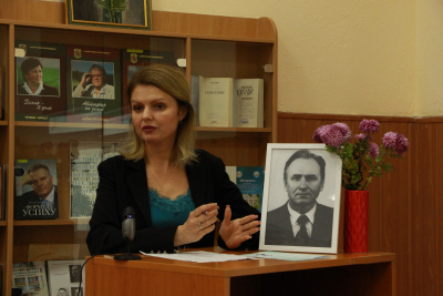Далі слово взяла Ірина Баньковська, старша наукова співробітниця, з доповіддю на тему «Роль особистості професора Баньковського Броніслава Володимировича у процесі створення та вдосконалення м’ясних порід свиней».