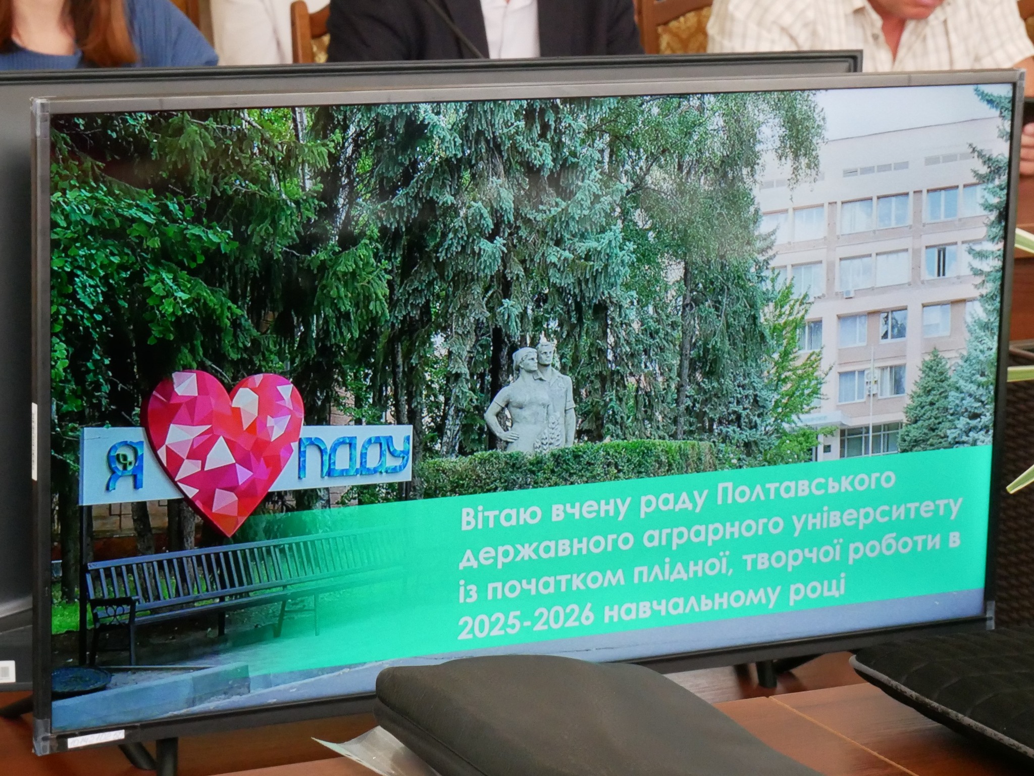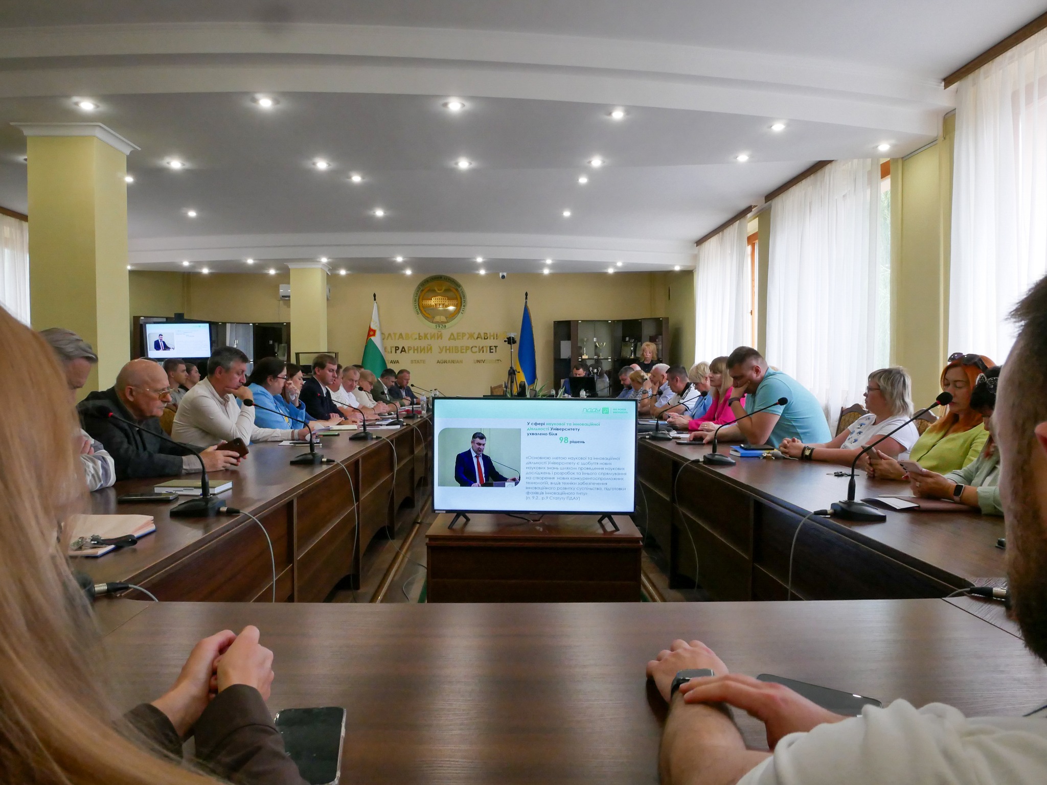 26 серпня в Полтавському державному аграрному університеті відбулося засідання вченої ради, присвячене підбиттю підсумків 2024/2025 навчального року та підготовці до нового етапу освітньої діяльності. Засідання відкрила голова вченої ради професорка Валентина Аранчій, яка оголосила порядок денний і регламент роботи.