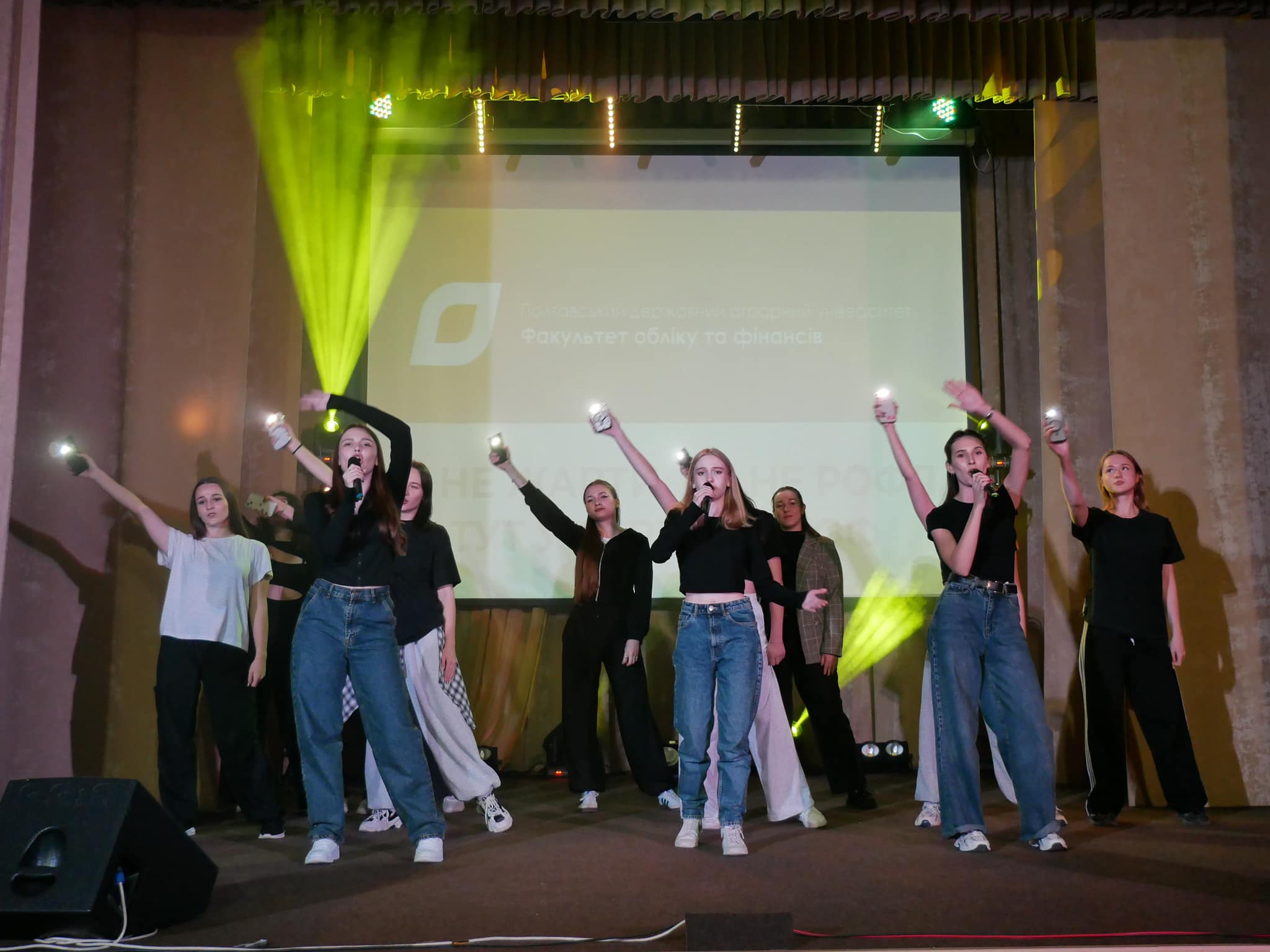 Представники факультету обліку та фінансів також продемонстрували свій хист у пісенному, гумористичному та танцювальному жанрах. Запалили зал під шалені оплески групи підтримки.