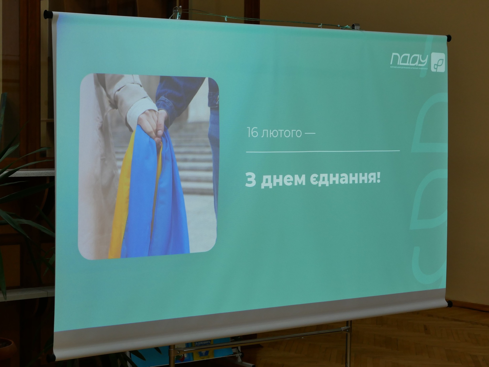 16 лютого Полтавський державний аграрний університет долучився до відзначення Дня єднання — свята, що символізує консолідацію українського суспільства перед зовнішніми викликами. Захід, організований Центром національно-патріотичного виховання під керівництвом Тамари Шаравари, об’єднав викладачів і студентів навколо ідей соборності та державної відповідальності.