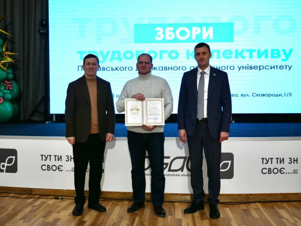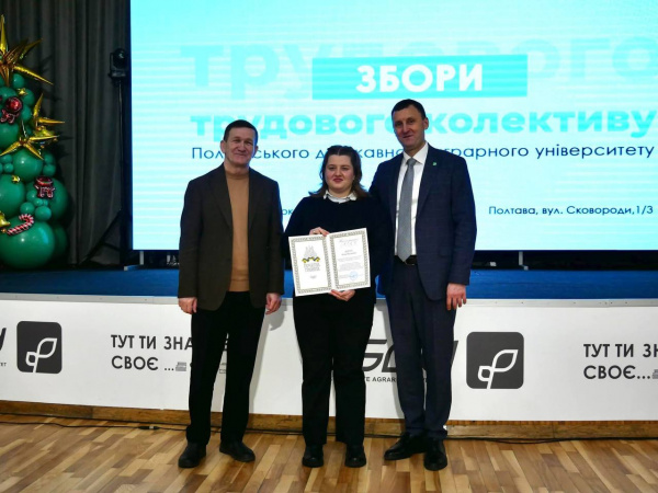 - Почесними грамотами Департаменту агропромислового розвитку Полтавської обласної військової адміністрації - професор кафедри технології виробництва продукції тваринництва Павло Ващенко і лікар ветеринарної медицини навчальної лабораторії факультету Юлія Дереза;