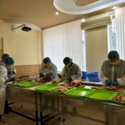 Після завершення періоду вирощування бройлерів проведено контрольне зважування, за результатами якого визначено кінцеві показники живої маси. Далі здійснено вибірковий забій птиці та обвалку тушок для оцінки м’ясних якостей, морфологічного складу та співвідношення основних частин туші. Отримані дані будуть використані для наукового узагальнення та підготовки публікацій, спрямованих на удосконалення технологій годівлі й ветеринарного забезпечення у промисловому птахівництві.