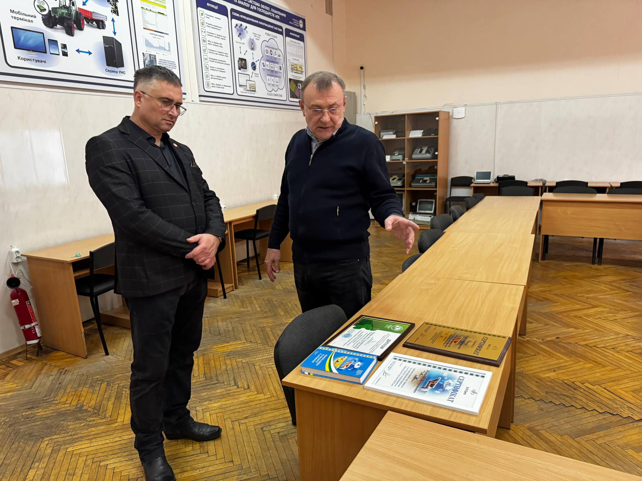 Професор Самборскі з інтересом ознайомився з лабораторіями 3D-моделювання, цифровізації агросектора, стендовими презентаціями з безпілотними технологіями. Також гість відвідав навчальне заняття з інформаційних систем (3 курс, спеціальність «Інформаційні системи та технології), на якому студенти демонстрували прикладні кейси застосування ІС Soft.Farm в аграрному секторі в контексті запровадження Агрокультури 4.0. Олена Копішинська коротко представила концепцію запровадження ERP-системи для агропродовольчих ланцюгів. Відбулися предметні дискусії та обмін думками щодо сталого розвитку, цифрової трансформації агробізнесу, підготовки ІТ-фахівців для АПК і впровадження практико орієнтованих курсів.
