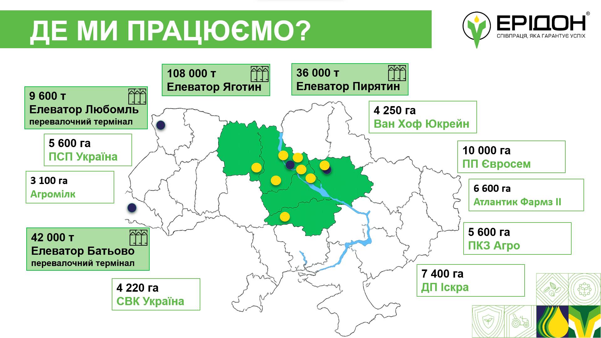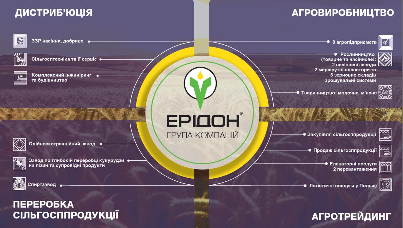Група господарств компанії «Ерідон Агровиробництво» активно розвиває як рослинництво (товарна та насіннєва продукція), так і тваринництво (м’ясний і молочні напрями), використовуючи передові технології, вкладаючи власні інвестиції в розвиток та інфраструктуру громад, забезпечуючи тисячі робочих місць.