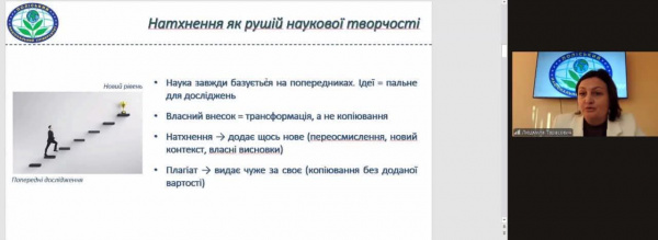 - етика наукового тексту та межу між натхненням і плагіатом – Людмила Тарасович (к.е.н., доцентка, завідувачка кафедри менеджменту та маркетингу, відповідальна за атестацію докторів філософії в НІІ менеджменту, бізнесу і права Поліського НУ);