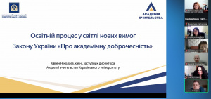 Участь представників кафедри паразитологія та ВСЕ у вебінарі «Освітній процес у закладах вищої освіти в контексті нових вимог Закону України "Про академічну доброчесність"»