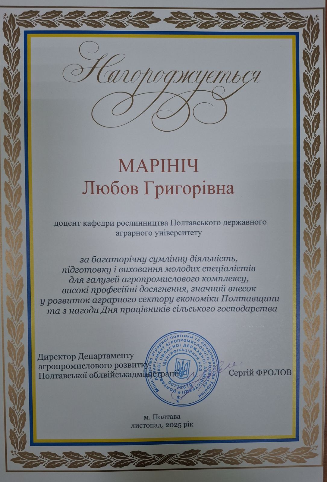 електронна скринька: liubov.marinich@pdau.edu.ua